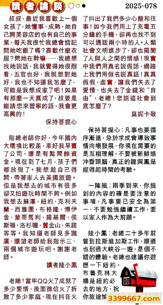 | 主题 :078期:彩民推荐〖貼信讀者論壇〗 |