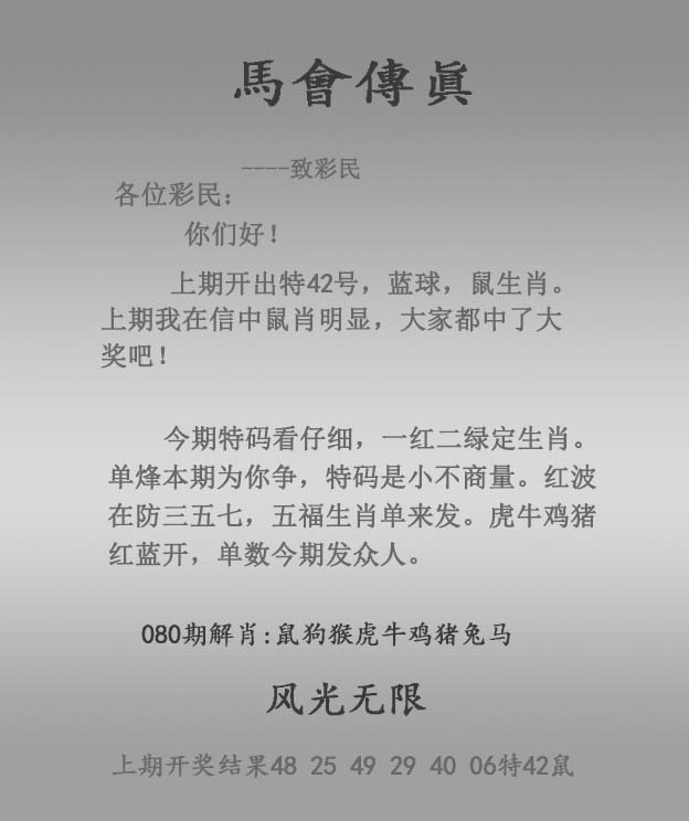 | 主题 :080期:正马会传真 |