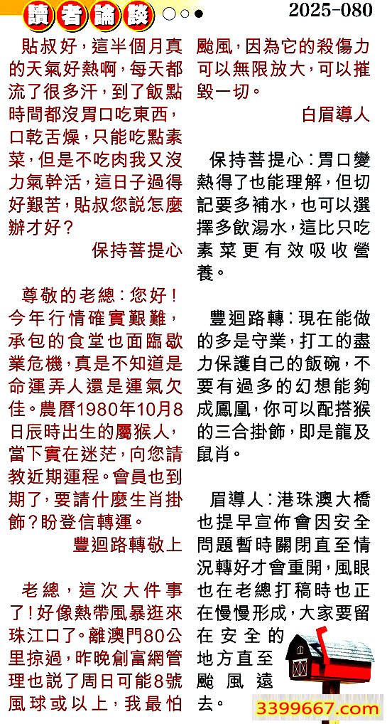 | 主题 :080期:彩民推荐〖貼信讀者論壇〗 |