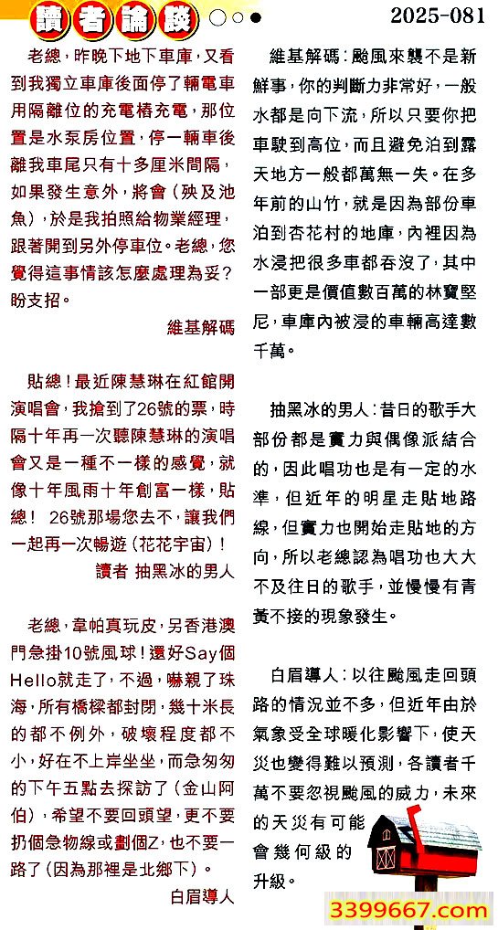| 主题 :081期:彩民推荐〖貼信讀者論壇〗 |