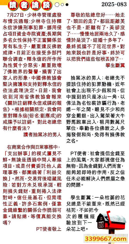| 主题 :083期:彩民推荐〖貼信讀者論壇〗 |
