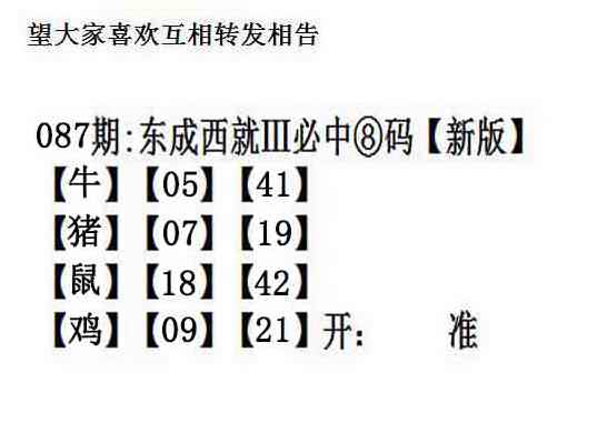 | 主题 :087期:另版【东成西就四肖8码】 |