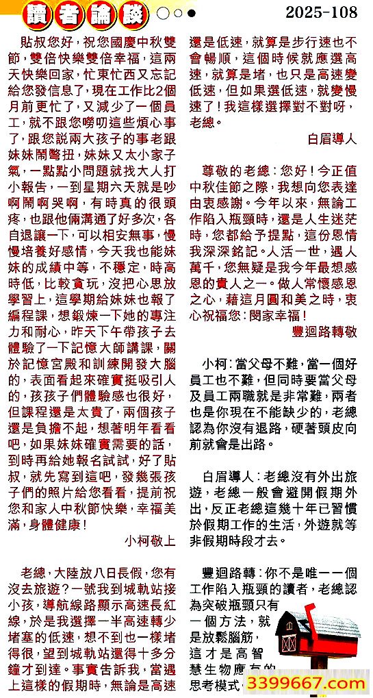 | 主题 :108期:彩民推荐〖貼信讀者論壇〗 |