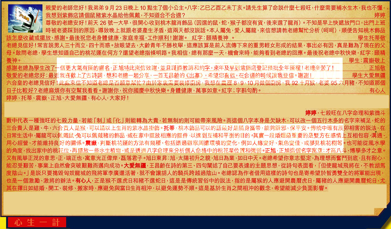 【4】.感謝老總為學生改了一個更大氣有運的網名,正旭特此來信致謝,並且謹遵教誨和約字,來年及早到紫飾店登記預批全年運程!老總辛苦了!  正旭敬